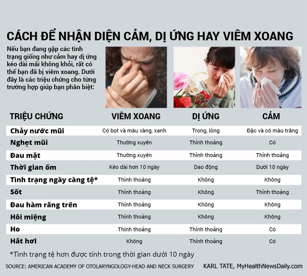 Cả viêm xoang và viêm mũi dị ứng đều có thể trở thành bệnh mãn tính nếu không được can thiệp kịp thời. Người bệnh thường xuyên gặp tình trạng nghẹt mũi, đau đầu, mệt mỏi, ảnh hưởng lớn đến học tập, công việc và giao tiếp. Bên cạnh đó, việc lạm dụng thuốc xịt mũi kéo dài cũng gây tổn thương niêm mạc và giảm hiệu quả điều trị.